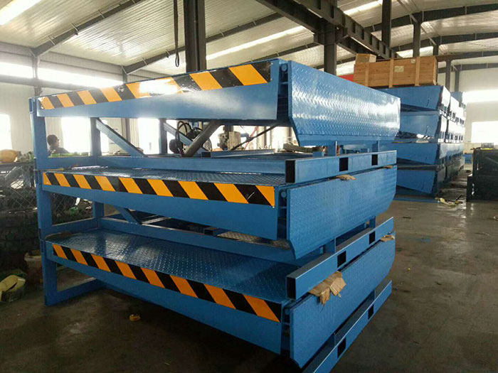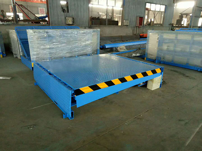 固定式液压登车桥是实现货物快速装卸的专用辅助设备,它的高度调节功能使货车与库房的货台之间架起一座桥梁,叉车等搬运车辆通过它能直接驶入货车内部进行货物的批量装卸,仅需单人作业,即可实现货物的快速装卸。它使企业减少大量劳力,提高工作效率,获取更大经济效益。固定登车桥产品说明: 固定式液压登车桥(又名:高度调节板/卸货平台或电动液压月台)是实现货物快速装卸的专用辅助设备,安装在月台、建筑物上,搭接于货车车厢,调节月台、建筑物地面与车厢之间的高度差。登车桥前端的可翻转搭接扳在装卸货物时始终紧贴车厢。登车桥的角度调节功能使使货车与建筑物地面之间架起一座桥梁,各种搬运车可顺利通过登车桥,在建筑物地面与车厢间运送货物。并且,只需一个操作工人作业,即可实现货物的快速装卸。它使企业减少大量劳力,提高工作效率,获取更大经济效益.是现代企业安全生产,提高物料流通速度之首选。 固定式液压登车桥的应用:产品可根据用户的不同需要,广泛应用于码头、站台、仓库等地。在外形尺寸,承受载荷等方面都可以作特殊设计。 固定式登车桥安装在货台的侧面,与货台地面和侧面齐平。 固定式登车桥的桥板可上、下倾斜,其外端可高出或低于货台平面,使之与车厢等高。桥板的顶端有一翻板,自动搭在车厢边缘,使货台与车厢平稳过渡。