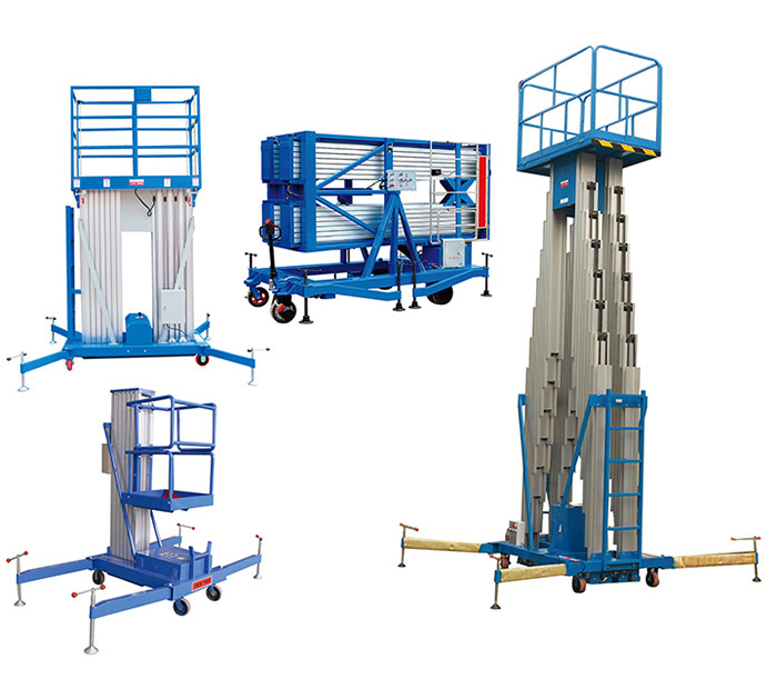 产品特点:双柱铝合金升降机:升降动力分为220V、 380V,或电瓶动力源,特殊环境也可采用防爆泵站及防爆电器。升高4——10米,载重100-150公斤。主体采用高强度优质铝合金材料,具有造型美观、体积小、重量轻、升降平稳、安全可靠等优点。广泛用于工厂、宾馆、餐厅、车站、影剧院、展览馆等场所,是保养机具、油漆装修、调换灯具、电器、清洁保养等用途1、未经基本操作培训的人员不得使用本机。2、未达到规定的使用条件不得强行作业。3、升降过程和起升状态,桅柱及平台不得与任何障碍物或运动物体发生碰撞。4、非紧急状态,地面人员未得到高空作业人员的指令,不得操作下控制装置。5、平台起升后,其底下严禁站人或堆放物品。6、禁止变更、修改和废弃安全装置。7、禁止超载起升。8、禁止带电移动整机。9、禁止擅自设置增加工作高度的装置。