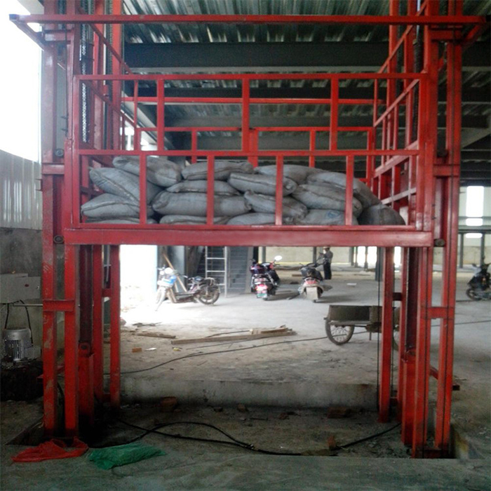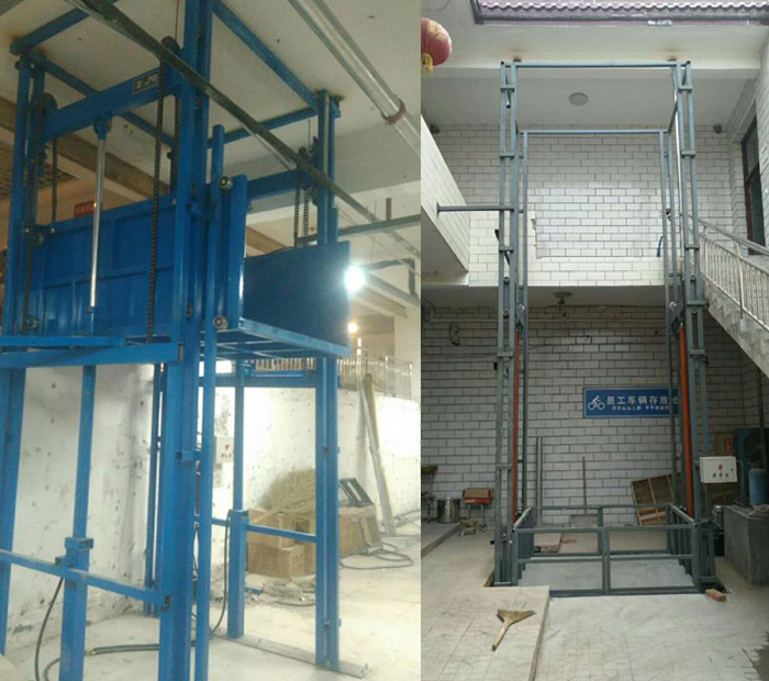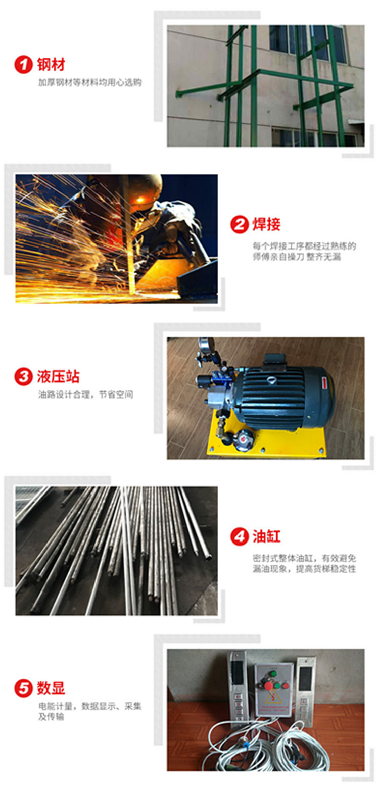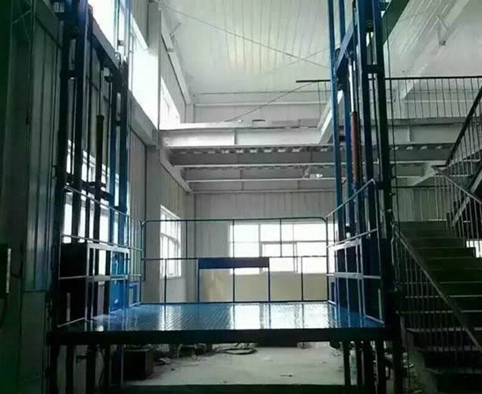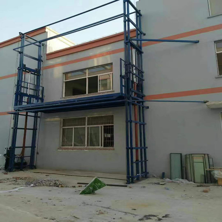 室外升降机(导轨式升降机)也称导轨式升降平台,属于固定式升降平台可根据现场环境定做使用;层门可贯通,厂房内外可相互戳开,方便、节省空间;特别适合2-3层钢结构厂房,内外部均可使用.一般载重吨位0.5-5吨,升降高度1-15米。可以根据客户要求设计定做定做。室外导轨式升降机产品简介:导轨式液压升降平台是一种非剪叉式液压升降台,用于二层以上工业厂房、餐厅、酒楼货物运输,由于低高度仅150-300mm,实用于不能开挖地坑的工作场所,同时无须上部调点,具有多种形式(单柱、双柱、四柱),动作平稳、操作简单可靠,液压、电器多种货物传输经济、轻松。(具体承载力及升高层数、尺寸可根据用户要求设计制作)导轨式液压货梯、货物提升机主要用各种工作层间货物上下运送;立体车库和地下车库二层以上高楼间、无法开挖地坑场所、顶层高度不能到达要求的场合等比较难解决的狭小空间,济南沃力宸升降机械有限公司将竭尽全力为你打量身打造高效率的送货平台,产品液压系统设置防坠、上下层门互动连锁,各楼层和升降台工作台面均可设置操作按钮,实现多点控制。产品结构坚固,承载量大,升降平稳,安装维护简单方便,是经济实用的低楼层间替代电梯的理想货物输送设备。 根据升降台的安装环境和使用要求,选择不同的可选配置,可取得更好的使用效果。